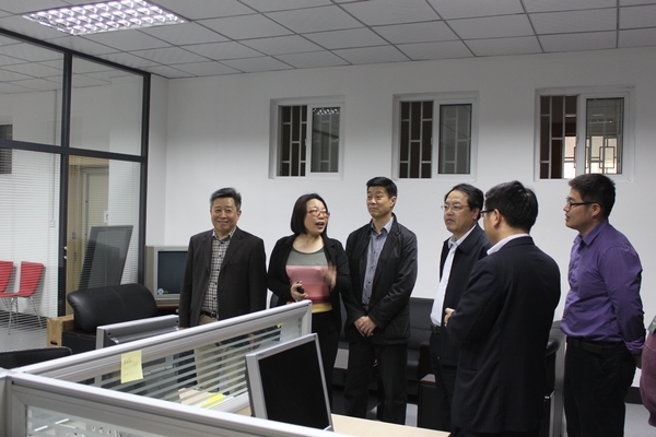 于文明书记、林群校长和贾玉明副书记在张艳伟部长的陪同下视察新闻中心