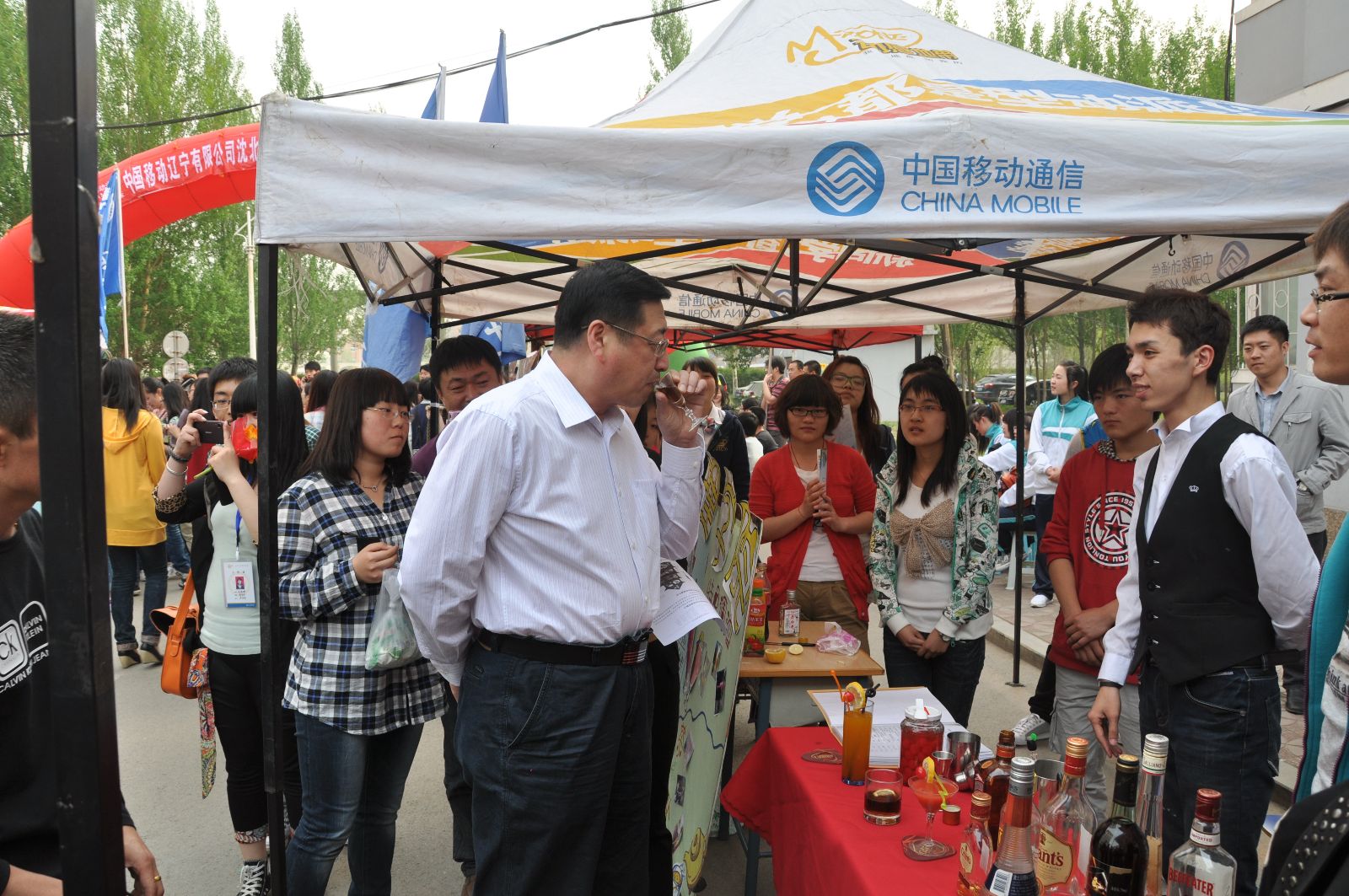 活动开始后,夏敏副校长等领导在文化广场参观了各个文化模块的活动。他亲自品尝了旅游管理学院学生调制的鸡尾酒,观看了教师专业发展学院学生现场的手工编织及剪纸,体验了体育科学学院的体能测量仪器。在参观中,他还同参展学院以及社团组织进行了亲切的交流。