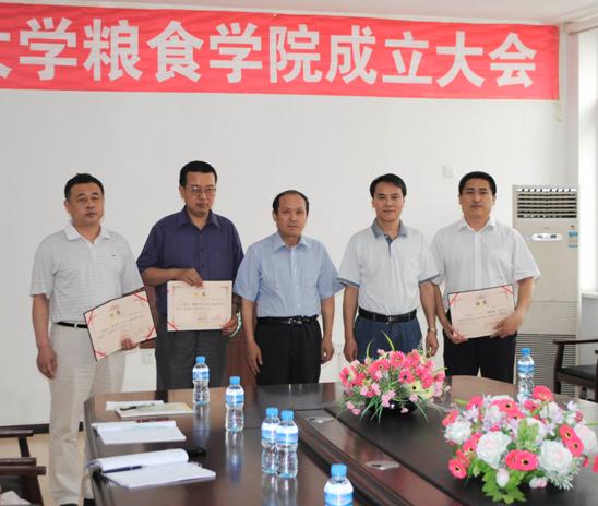 副校长陶秀伟为学院领导班子颁发了聘书并发表讲话。他首先代表校党委对学院的成立表示祝贺,并对学院今后的发展提出了几点希望:一是粮食专业根基深厚,具有50多年的文化沉淀,且大部分老师都来自于粮食专业的最高学府,由于大家的不懈努力,粮食专业建设才有了今天的发展,使专业层次上了新的台阶。整合后要尽快融合,发挥各自的专业特长,在新组建的管理团队的带领下,营造一个和谐共事,共谋发展的良好氛围;二是要明确粮食学院的办学定位和人才培养目标,坚持特色化办学,保持特色化的人才培养方向,努力提高学生的实践应用能力,培养行业需要的应用型人才,加大教学改革力度,争取在工科专业做出表率;三是加强师资队伍建设,引进高层次人才,使师资队伍建设可持续发展。最后,陶秀伟副校长表达了对学院未来发展的美好祝愿。