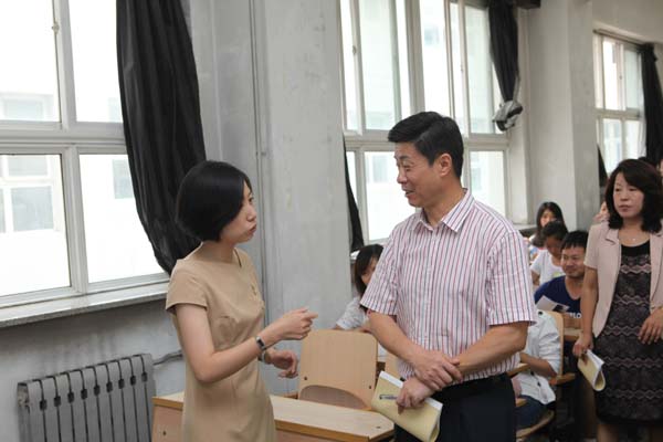 林群校长和夏敏副校长分别听取了青年教师姜莹、聂家昕、王书洋及离退休教师邱秀君的授课情况。