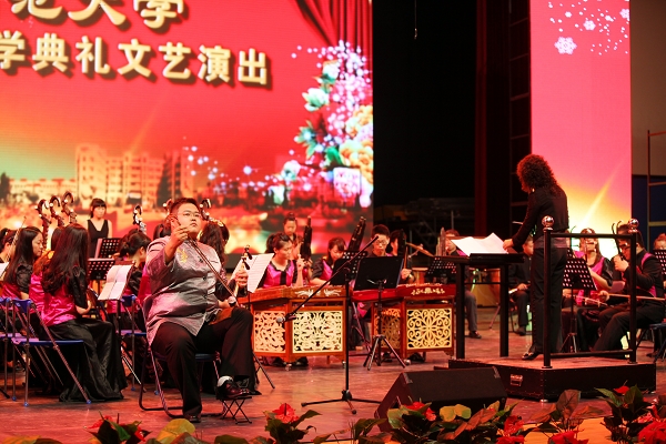 仪式后,与会领导和全体师生共同欣赏了由戏剧艺术学院师生奉献的精彩文艺演出。欢快悠扬的民族管弦乐,刚柔并济的现代舞、民族舞,耳熟能详的现代京剧,古典优雅京歌雅韵,叹为观止的传统京剧无不赢得了在场师生的阵阵掌声,一次次将演出推向高潮。