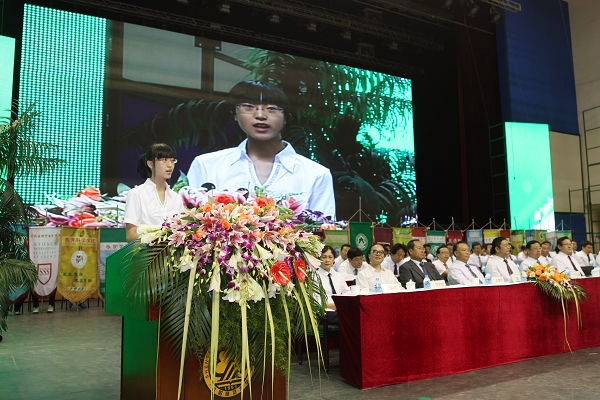 戏剧艺术学院孙一鸣同学代表全体2012级学生向校长报到