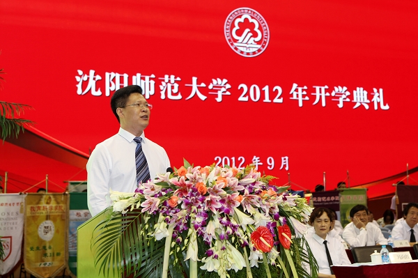讲话中,他以一名师长的身份对2012级同学们提出了殷切的希望。他希望同学们志存高远。在大学期间,形成正确的世界观、人生观和价值观,把人生的理想和志向同民族的复兴、祖国的昌盛联系起来,牢固树立建设中国特色社会主义的理想,坚定为中华民族的伟大复兴而奋斗的远大志向;希望同学们脚踏实地。他说,万里征程从第一步开始,未来发展要从脚下一步步走来,前面的道路毕竟不是平坦大道,定会遇到各种困难和挫折,希望同学们面对这些困难要脚踏实地,从今天做起,从眼前做起;希望同学们充分发扬“自强不息,创业创新”的沈师精神。从今天开始,从现在开始,融入沈师的大家庭中,将沈师精神内化为自己刻苦求知和大胆探索的人生态度和进取精神,敢于面对压力和竞争,树立必胜的信心,用坚定地信念和勇气去把握人生当中的每一次机遇;用自己的智慧和胸怀坦荡面对人生征程上的每一次抉择。