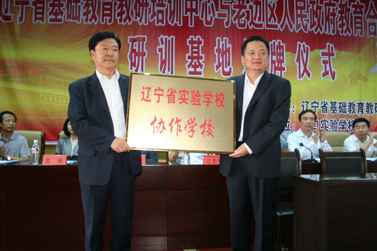 必赢官网副校长关松林与老边区区长冮志宇就老边区的教师培训、校长培训、教学研究指导、名校协作、研训基地建设等方面签署协议书,并向营口实验学校颁发了研训基地牌匾、辽宁省实验学校协作校牌匾。
