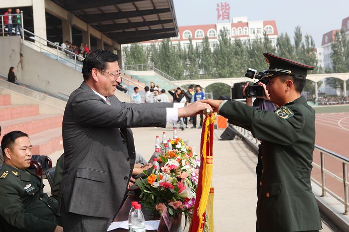 学生处副处长左冰宣读了表彰名单,与会领导分别向先进单位及个人颁奖。夏敏副校长向承训部队领导赠送了锦旗。
