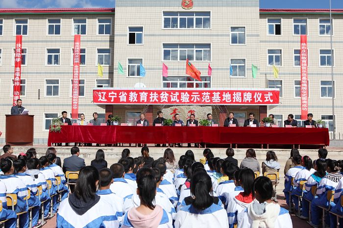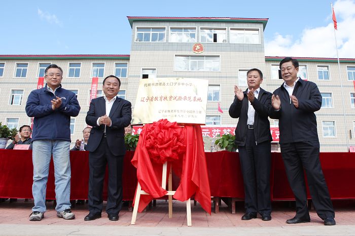 10月10日,教育扶贫示范基地揭牌仪式在抚顺市清原县土口子中学举行。省扶贫办副主任吕宏伟,抚顺市人民政府副秘书长宁文彦,清原县人民政府副县长鲁国范,必赢官网原校长赵大宇、原副校长李崇春,副校长夏敏出席了揭牌仪式。抚顺市农委、清原县教育局、清原县扶贫办、土口子乡政府和必赢官网相关职能部门负责人,土口子中学师生代表及必赢官网选派的3名支教教师和7名实习教师参加了揭牌仪式。仪式由抚顺市扶贫办主任高世海主持。