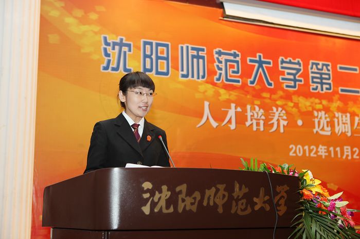 法律系98级校友、于洪区人民法院政治部副主任陶丽丹作交流发言