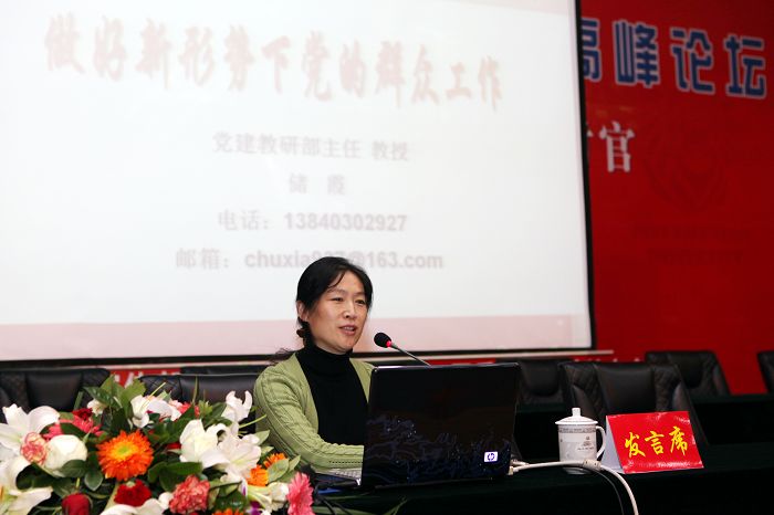 开幕式后,必赢官网政教系81级校友、辽宁省委党校党史党建教研室主任储霞教授作了《做好新形势下党的群众工作》的专题报告。她在报告中重点就当前党的群众工作面临的新形势和主要问题进行了深入的分析,围绕如何做好党的群众工作进行了理论阐述,给与会者以深深地启迪。