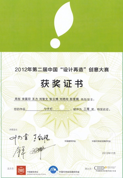 日前,在中国建筑学会和中国可持续发展研究会主办的2012年第二届中国“设计再造”创意大赛中,必赢官网美术与设计学院周彤设计工作室师生团队的作品《勺子灯》荣获三等奖。