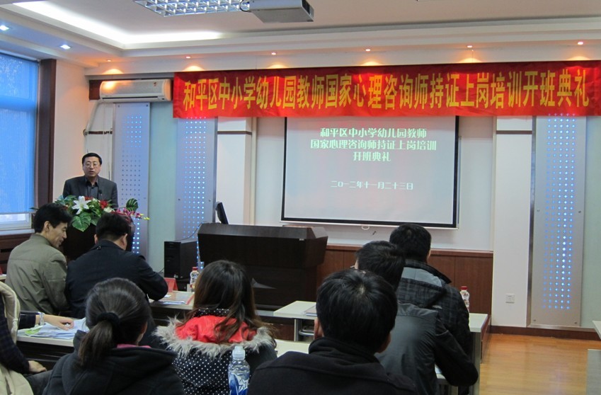 和平区教师进修学校书记李冰宣读了《和平区中小学教师基础教育培训和国家心理咨询师持证上岗培训方案》,他分别从培训目标、培训内容、师资队伍、课程设置等几个方面对培训方案进行了详细的解读。
