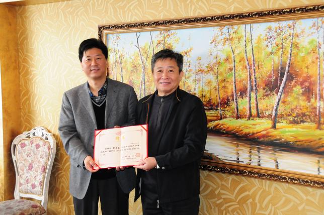 党委书记于文明教授为靳玉乐教授颁发聘书