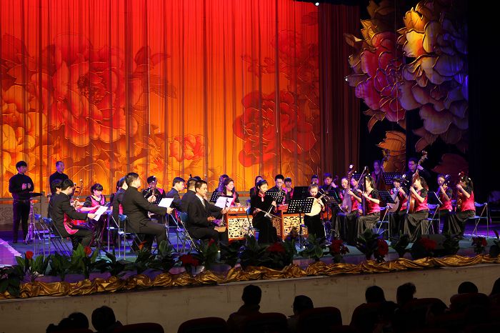 伴随着戏剧艺术学院民族音乐系师生的民乐合奏《喜洋洋》,演出拉开了帷幕。之后,由李刚教授编曲的京胡与乐队《月夜》完美诠释了静谧夜晚,圆月灯上情景,使观众们迅速沉醉在国粹艺术之中。