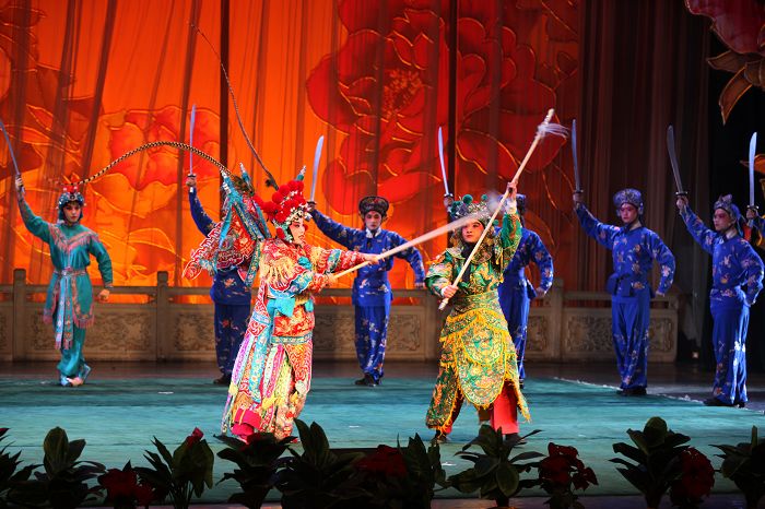 随后,由师生奉献的传统京剧《状元媒》《对花枪》、《将相和》等经典剧目陆续上演,演员们在唱念做打方面的精彩的表演不时博得现场观众的阵阵掌声和叫好声。肖迪与赵向军老师的一曲京歌《共产党员》大气磅礴,唱出了一名共产党员的豪迈气概。最后,由2010级学生奉献的京剧《寿州救驾》,体现了必赢官网京剧专业学生扎实的基本功,展示了戏剧艺术学院成立十年来在人才培养上的成绩,把整场演出推向高潮。