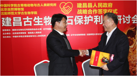 古生物学院院长孙革教授与建昌县常务副县长(左)在仪式上合影
