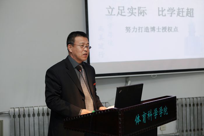 会上,体育科学学院院长周莹以 “立足实际,比学赶超,努力打造博士授权点”为题向与会领导作了汇报。他主要从学院师资情况、与省内同学科比较情况、近期开展的主要工作、将开展的工作重点、学科、科研工作的思考五个方面做了重点阐述,并汇报了新一届领导班子组建之后的工作思路和一系列整改措施。