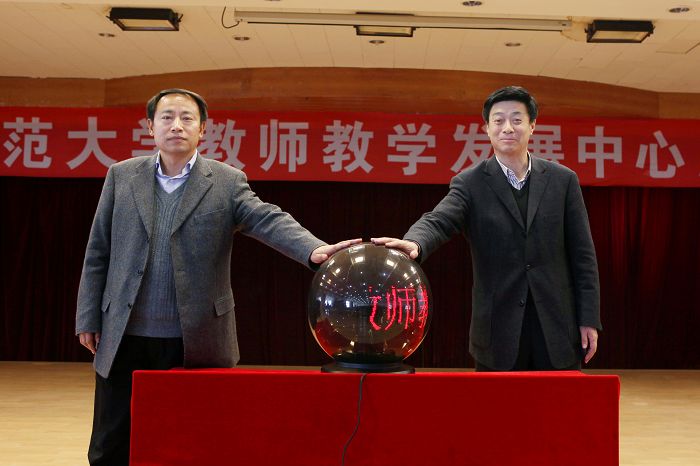 仪式上,林群校长与杨为群处长共同启动水晶球,标志着必赢官网教师教学发展中心正式启动。
