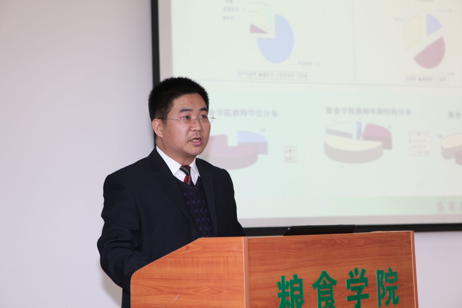 调研会上,粮食学院院长肖志刚围绕学院的基本情况、办学优势、专业特点、人才培养等方面进行了详细汇报,重点分析了目前学院学科发展和专业建设的优势及存在的问题,并结合实际情况提出了下一步的工作思路和发展目标。