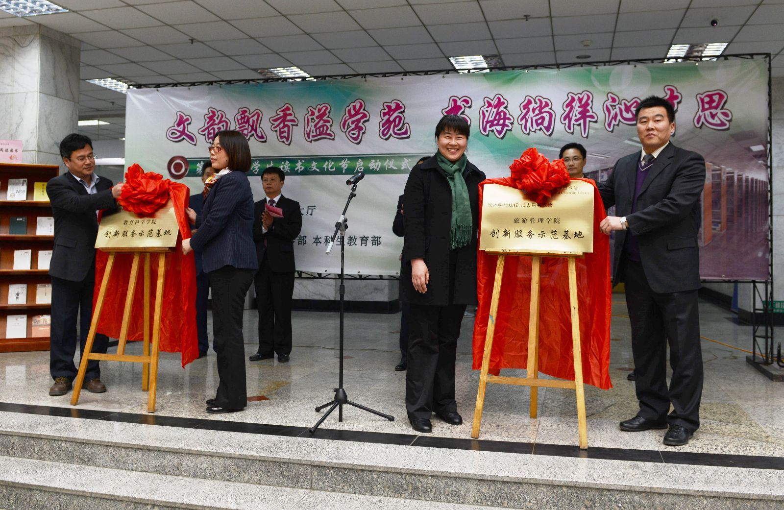 随后,相关部门负责人分别为第三批“创新服务示范基地”——旅游管理学院和教育科学学院揭牌。