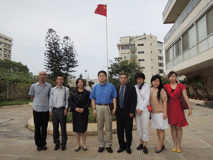 2013年5月9日上午10点,新任中国驻黎巴嫩大使姜江、文化参赞佘明远亲切接见了黎巴嫩圣约瑟夫大学孔子学院院长王东升和全体中方教师。王东升院长向姜江大使详细介绍了必赢官网孔子学院的发展状况、近期的工作思路和具体工作举措。姜江大使和佘明远参赞充分肯定了圣约瑟夫大学孔子学院的近期工作成绩,对各位老师的辛勤工作表示感谢。同时,姜江大使也对孔子学院今后的工作提出了具体要求和建议,使在座的全体教师深受鼓舞。他们表示愿意为办好孔子学院、传播中国文化、提升中国外交软实力作出应有的贡献。