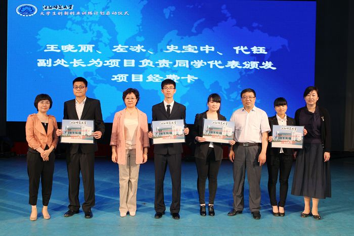 教务处副处长王晓丽、史宝中、代钰和学生处副处长左冰颁发项目经费卡