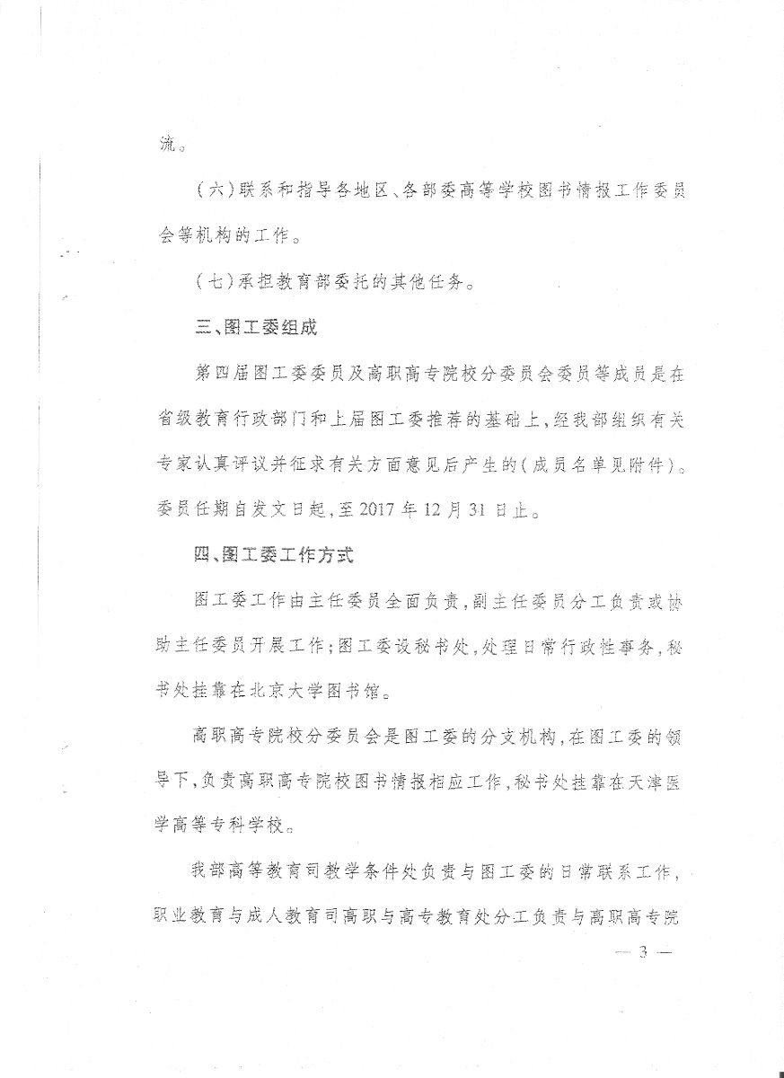第四届图工委委员是在省级教育行政部门和上届图工委推荐的基础上,经教育部组织有关专家认真评议并征求有关方面意见后产生的。委员聘期至2017年12月31日。