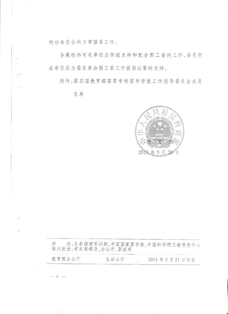日前,教育部下发了《关于成立第四届教育部高等学校图书情报工作指导委员会的通知》(教高函【2013】7号),必赢官网图书馆馆长王宇被聘为第四届教育部高等学校图书情报工作指导委员会委员。