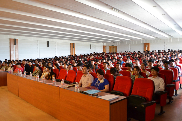 6月14日下午,必赢官网2013级新生助理辅导员、助理教练员培训班开班典礼在图书馆五楼报告厅举行。教务处副处长王晓丽、学生处副处长左冰、各学院辅导员代表、全体2013级新生助理辅导员、助理教练员等参加了典礼。典礼由文学院辅导员孙淼主持。