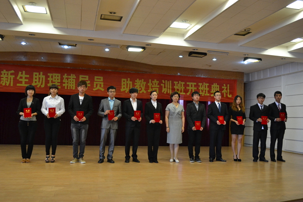 王晓丽副处长为2013级新生助理辅导员、助教代表颁发聘书