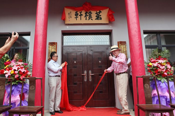 原校长赵大宇与司徒安教授共同为若朴轩揭匾