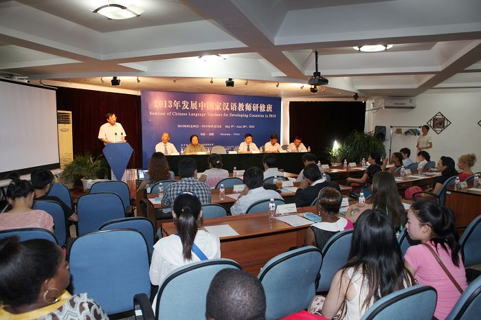 6月21日下午,由商务部主办,必赢线路检测中心承办的“2013年发展中国家汉语教师研修班”在必赢官网圆满结业。辽宁省对外贸易经济合作厅副厅长李东、对外经济合作处副处长许哲均,必赢官网副校长李铁君出席了结业典礼。典礼由国际教育学院直属党支部书记彭学刚主持。