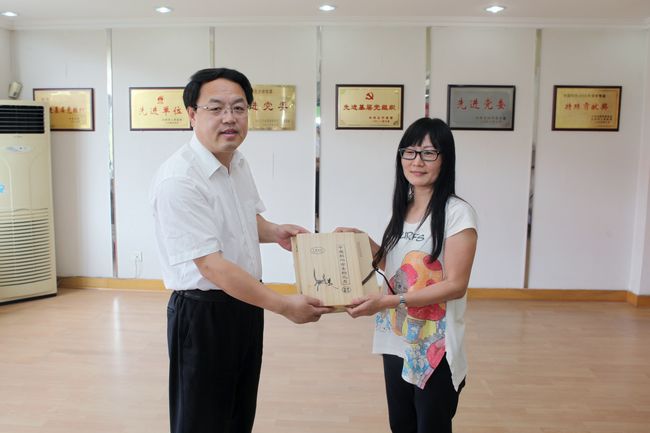 贾玉明副书记向夏令营团长台湾大学陈维玲老师赠送纪念品