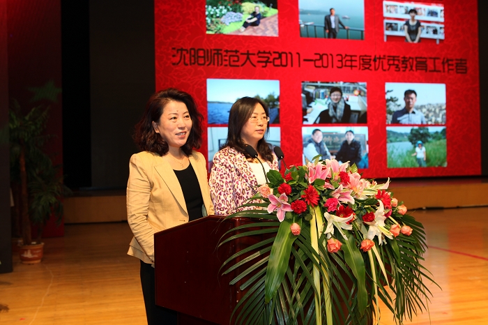 招生就业指导处处长杨杰和管理学院院长张淑华为优秀教育工作者开奖