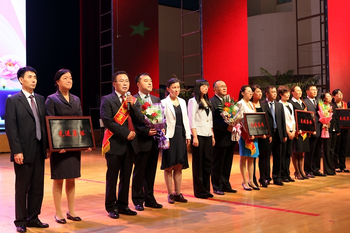 组织部部长许金龙和人事处处长韩国海为先进集体开奖