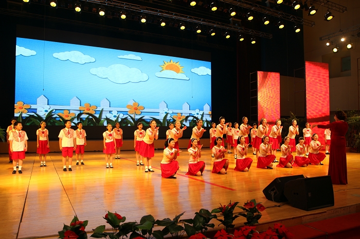 下午2时,大会在附属实验学校金笛合唱团演唱的《阳光少年》中拉开帷幕。