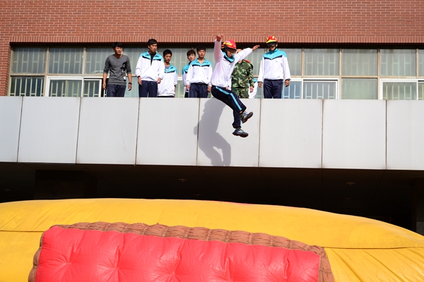 9月25日14时,必赢官网图书馆内火警警报声紧急响起,浓烟不断从窗户冒出,学生手捂着口鼻有序的从楼内跑出,部分学生利用绳索悬梯在专业人员的指导下成功自救。与此同时,六辆消防车从不同的方向驶来,消防官兵迅速升起高空云梯、支起逃生气垫,医护人员推着急救车组织营救……