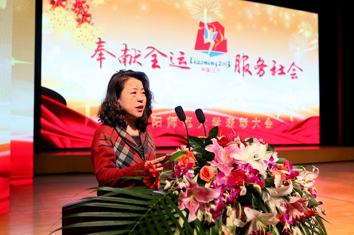 颁奖仪式上,校团委孙贺带领大家重新走进十二运的生活,从北区操场到沈阳建筑大学再到奥体中心,真情感人的语言、催人泪下的场景,再次为师生们呈现了学生们艰辛训练的画面和精彩表现。期间邀请学生代表陈晓琦、渠静明、迟晓平、刘军攒,辅导员代表朱莉莉、学前与初等教育学院党总支副书记梁克俊上台发言,一起畅谈参与十二运活动的收获和体会。