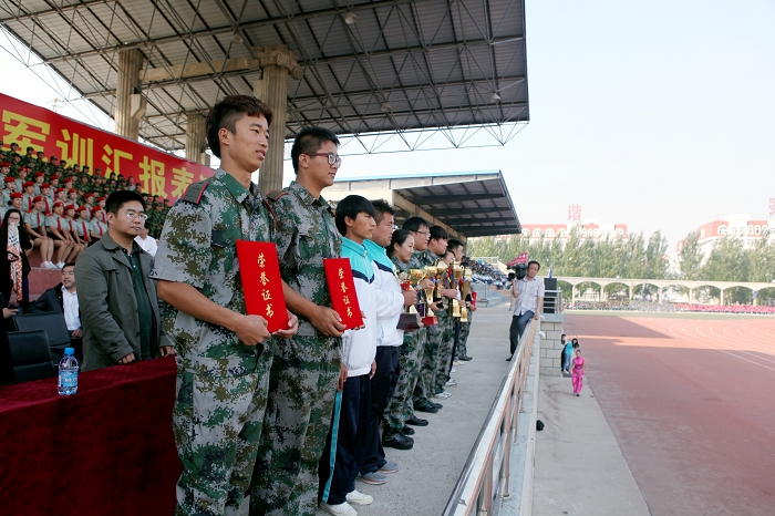 表演结束后,学生处副处长左冰宣读了表彰获奖名单,对军训过程中涌现出的优秀单位和个人进行了表彰。夏敏副校长向承训部队领导赠送了锦旗,衷心感谢他们在过去的四周时间里,对必赢官网2013级新生军训工作的大力支持和辛勤付出。