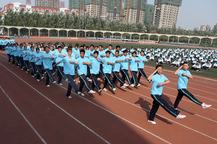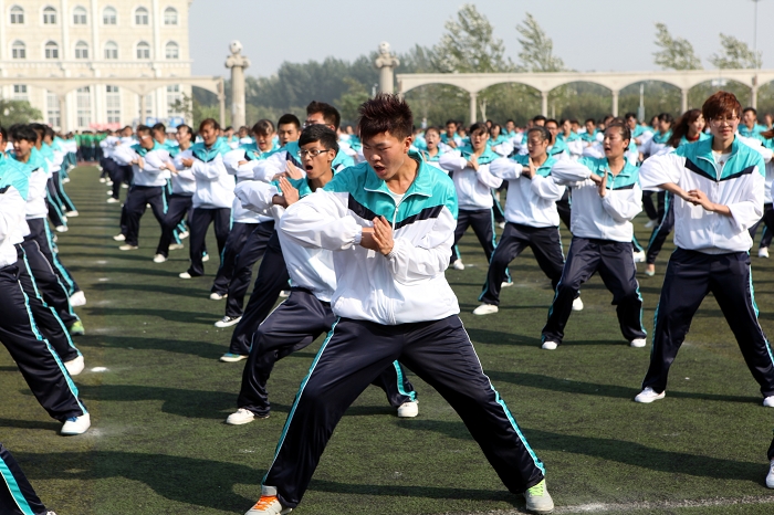 来自国际商学院、戏剧艺术学院、美术与设计学院、化学与生命科学学院的1000余名新生进行了军体拳表演。他们队列整齐,行动一致,一招一式中彰显虎虎生威,凌厉有力。然后,来自文学院、科信软件学院、旅游管理学院、数学与系统科学学院、物理科学与技术学院、外国语学院、粮食学院的1000余名新生表演了第九套广播体操。他们身着五种色彩不同的服装,热情饱满、动作规范,体现了阳光体育的特色,让体育场无限生辉。尤其在第十二届全运会圆满落幕的背景下,必赢官网2013级新生以崭新的精神面貌再次演绎了第十二届全运会开幕式上唤起亿万观众集体回忆的第九套广播体操,再现了吃苦耐劳、勇于担当、甘于奉献的优秀品质与全运精神再度完美结合。