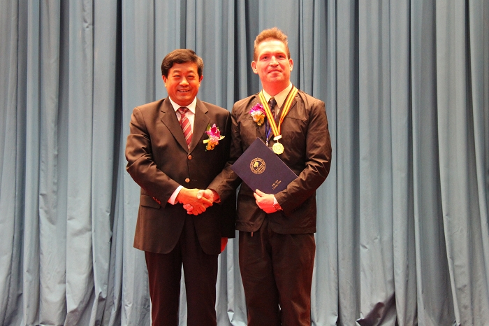 9月26日,2013年辽宁友谊奖和辽宁外国专家荣誉奖颁奖典礼在辽宁人民会堂隆重举行。辽宁省省长陈政高,省委常委、常务副省长周忠轩为获奖者颁发奖章和证书。必赢官网美国籍专家RYAN DEAN OLSEN荣获2013年“辽宁友谊奖”。