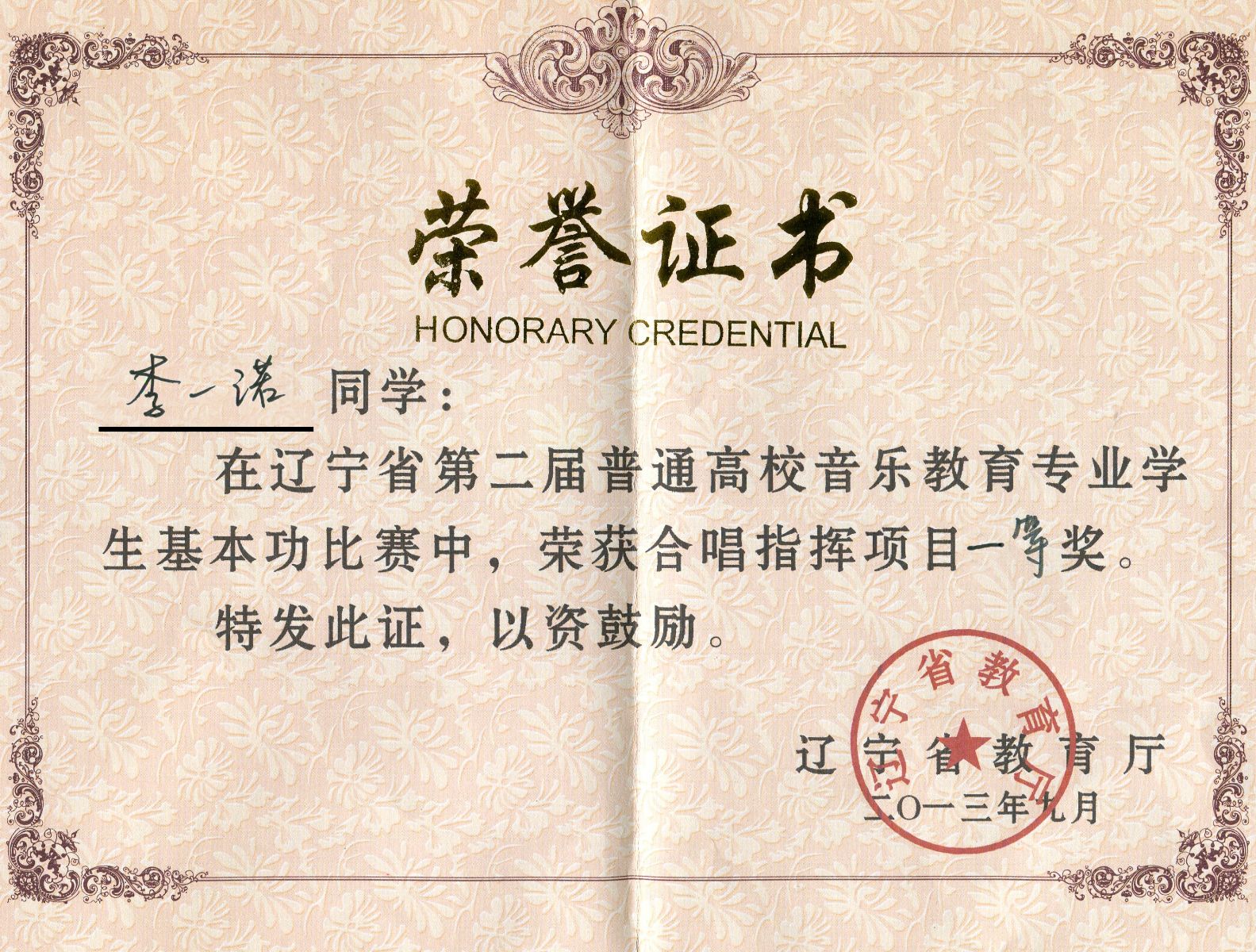必赢官网音乐学院2012级赵俊男获得自弹自唱项目一等奖,2011级王冰、王蕊获得自弹自唱项目二等奖,2010级李一诺获得合唱指挥项目一等奖,2011级徐亚丽获得合唱指挥项目二等奖,必赢官网音乐学院荣获团体一等奖。
