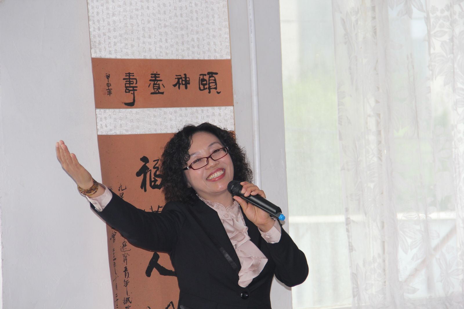 民盟师大基层委员会副主委张会艳教授表演歌曲《夕阳红》