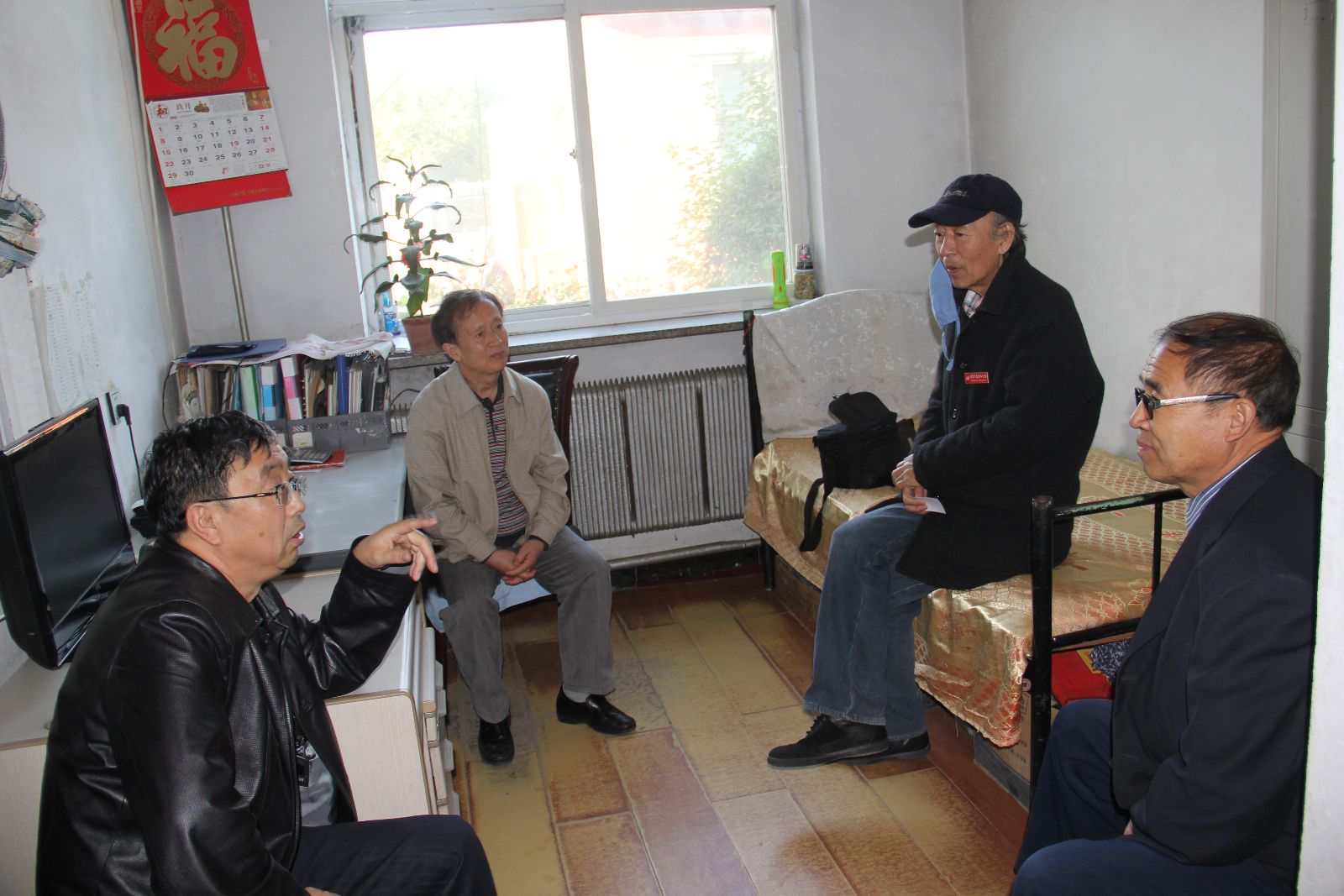 民盟师大基层委员会主委林承志、副主委曲洪山在了解敬老院情况