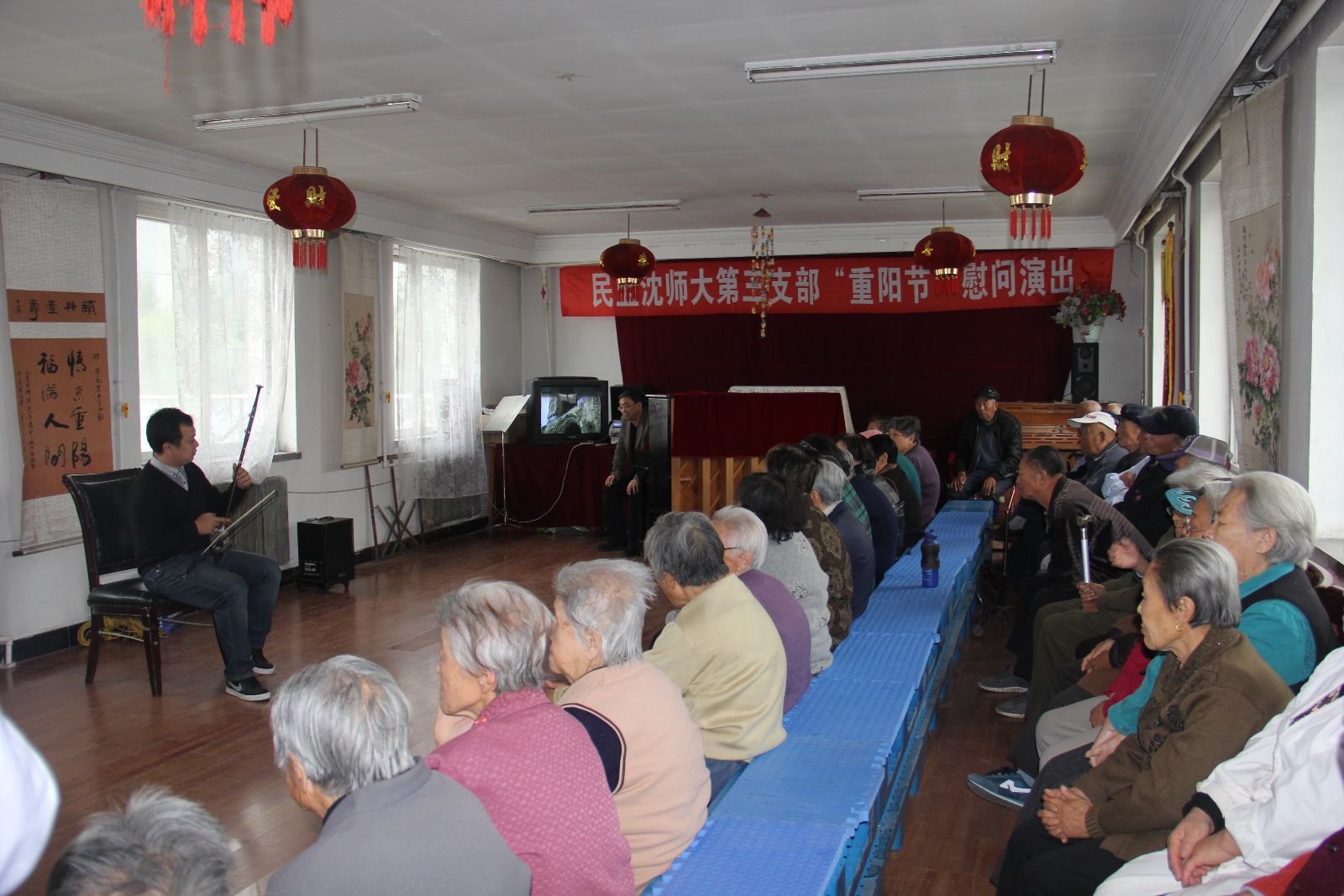 为弘扬中华民族敬老爱老的传统美德,在“重阳节”来临之际,民盟师大第三支部部分盟员,于10月13日来到沈阳市华能福利院慰问演出,为福利院的老人们带去了精神上的慰藉,让他们感受到了来自于社会的温暖。