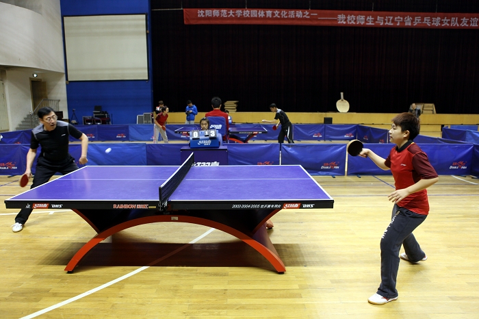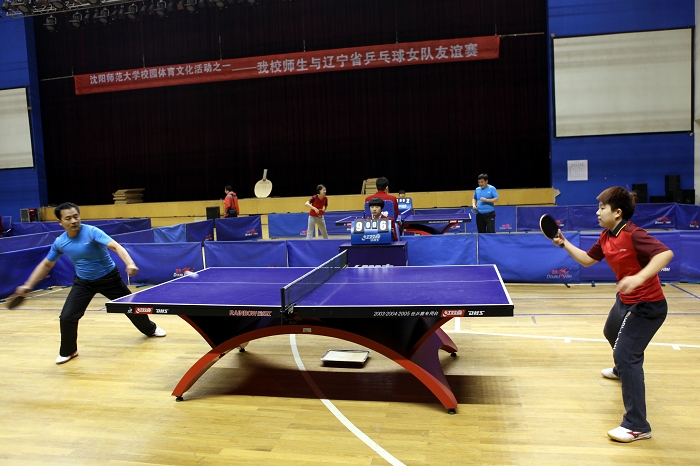 必赢官网教工与辽宁乒乓球女队队员“对战”