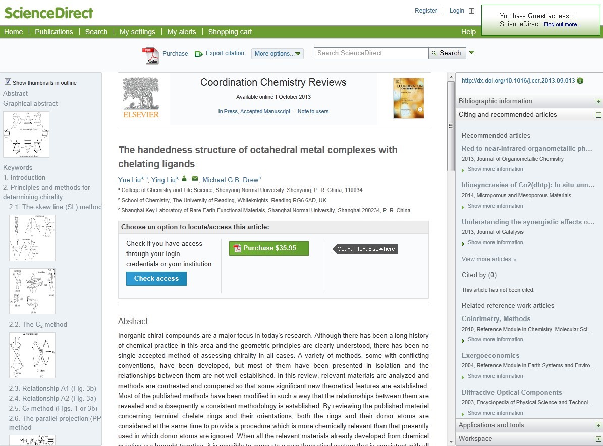 必赢官网化学与生命科学学院刘跃教授(第一作者)、刘颖教授(通讯作者)和英国里丁大学(Reading University)迈克尔·德鲁(Michael G.B. Drewb)教授合作的“八面体金属螯合物手性结构理论”的研究成果于10月1日发表在国际著名刊物Coordination Chemistry Reviews(配位化学评论)上。