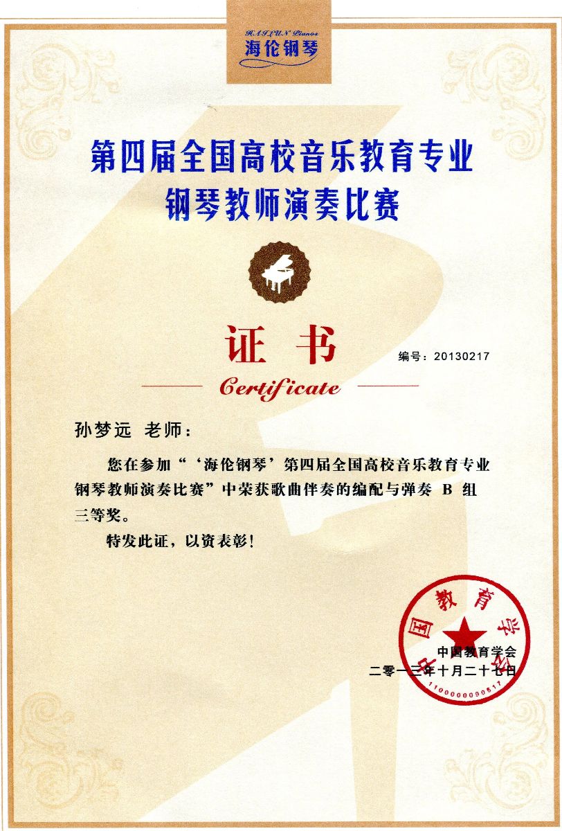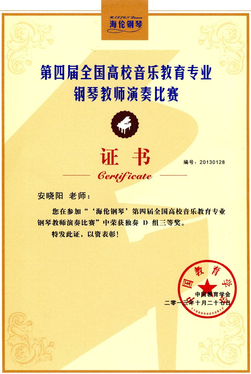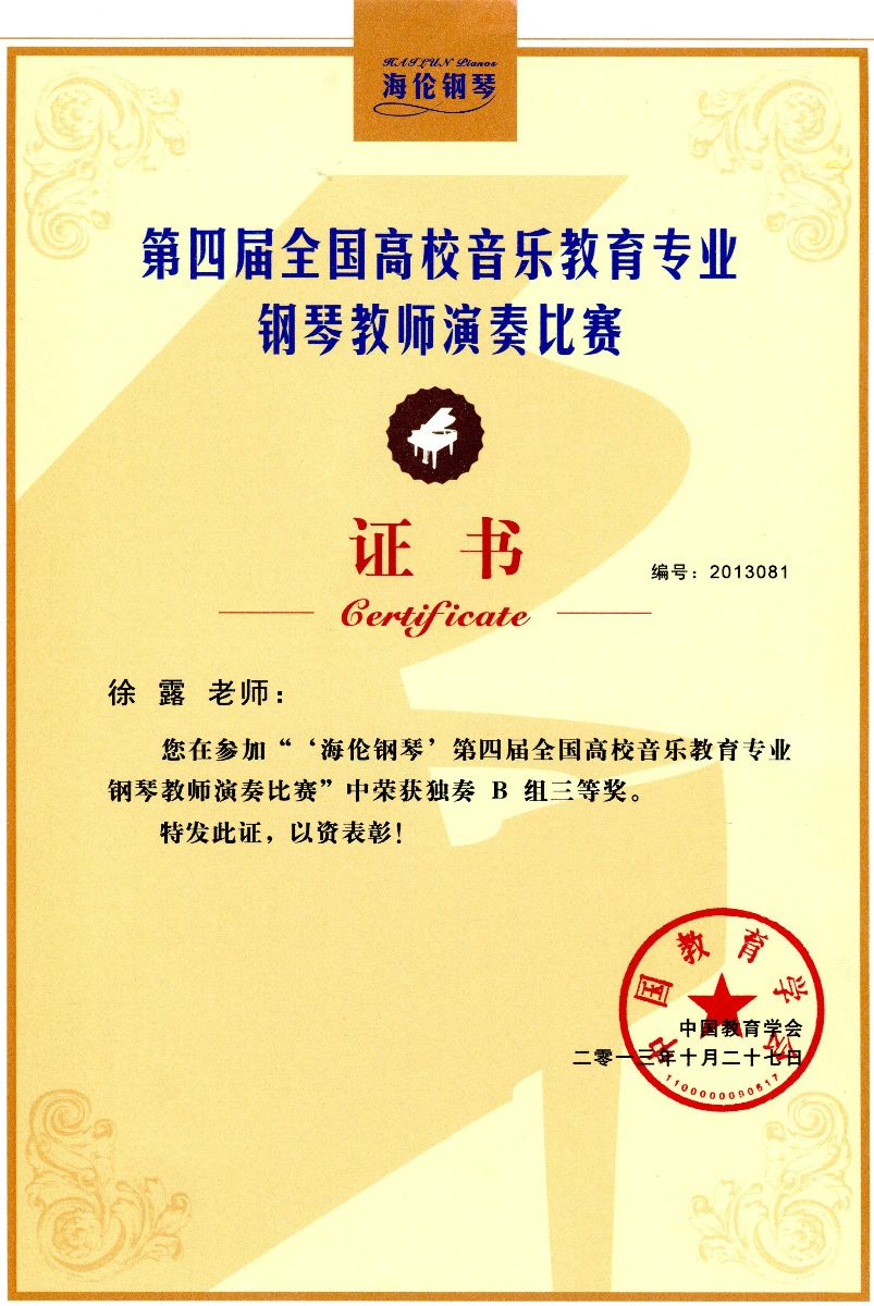 10月25日-28日,由中国教育学会主办,中国教育学会音乐教育分会、上海师范大学联合承办的“海伦钢琴”第四届全国高校音乐教育专业钢琴教师演奏大赛在上海师范大学音乐学院举行。必赢官网音乐学院徐露、张宇获得四手连弹B组二等奖,徐露获得独奏B组三等奖,安晓阳获得独奏D组三等奖,孙梦远获得歌曲伴奏的编配与弹奏B组三等奖。