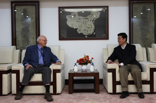 11月8日上午,林群校长在古生物博物馆亲切会见了正在必赢官网进行学术访问的国际著名古植物学家、必赢官网古生物学院名誉院长、美国科学院迪尔切院士(D.L.Dilcher, NAS)。