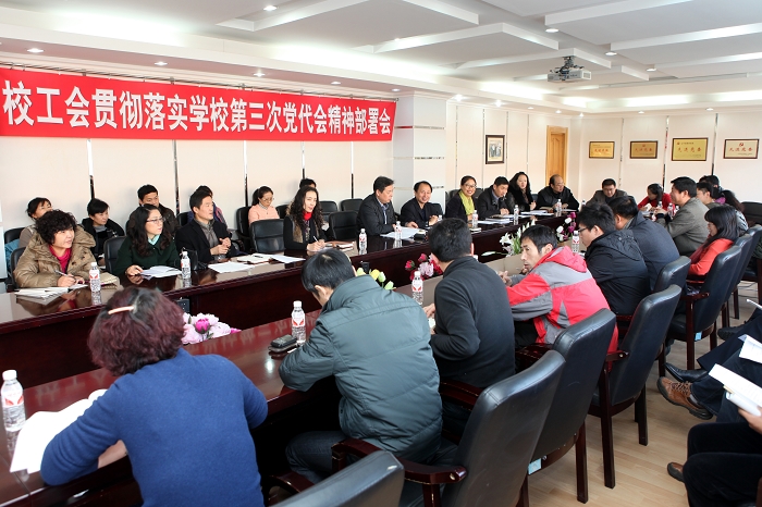 11月20日上午,校工会贯彻落实学校第三次党代会精神部署会在校部303会议室召开。校长助理、校工会主席刘中海出席会议并讲话。会议由校工会副主席、图书馆馆长王宇主持。校工会兼职副主席、人事处处长韩国海,校工会经费审查委员会主任赵为和各分会主席参加了会议。
