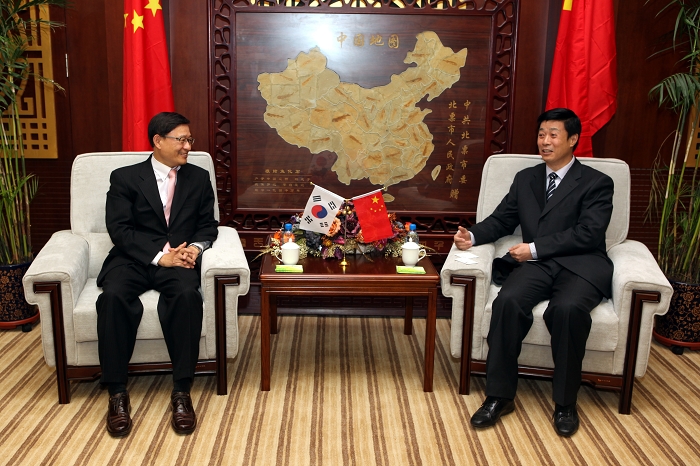 11月21日,韩国国会言论记者团采访部本部长张元奎博士来必赢官网进修学习,韩国驻沈阳总领事赵百相、文化领事刘福根、在外同胞科领事崔宗锡、韩国尖端产业交流协会会长金成秀等一行六人陪同张元奎博士到必赢官网进行了参观访问,林群校长会见了来宾。