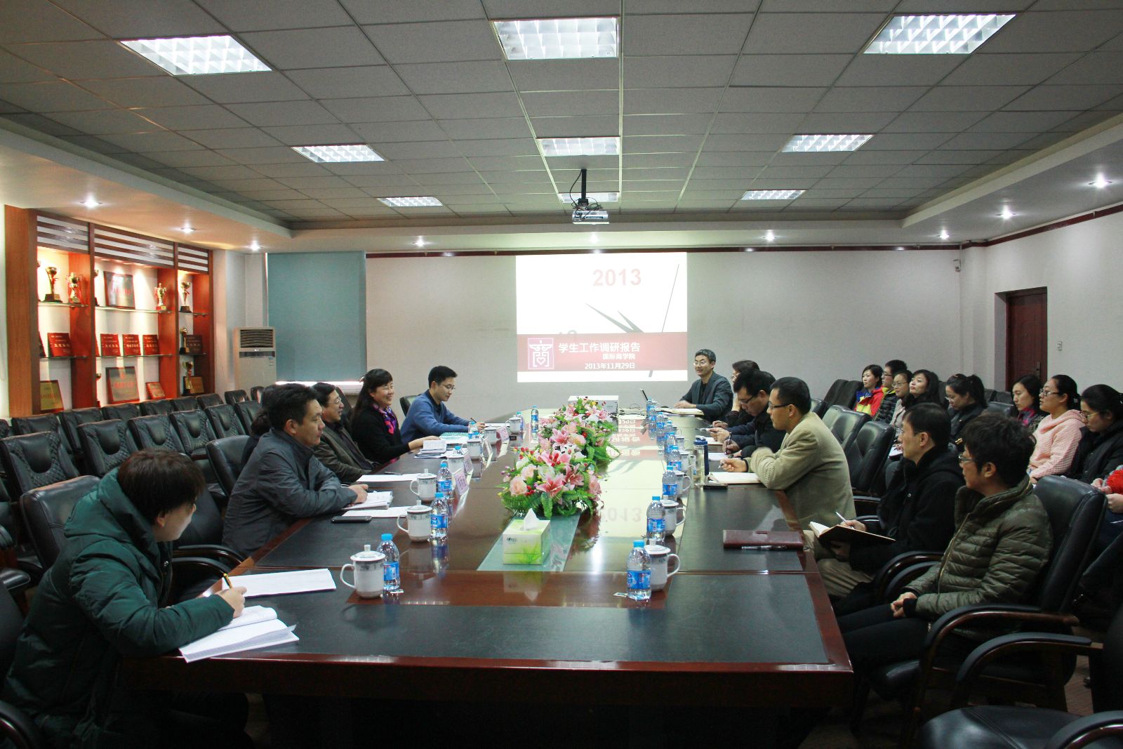 按照本科生教育部对学生工作专题调研活动的总体部署安排,11月29日,夏敏副校长带领的调研组一行5人先后到国际商学院、社会学学院、教育科学学院、法学院进行学生工作专题调研。调研工作会由学生处处长刘亚军主持。